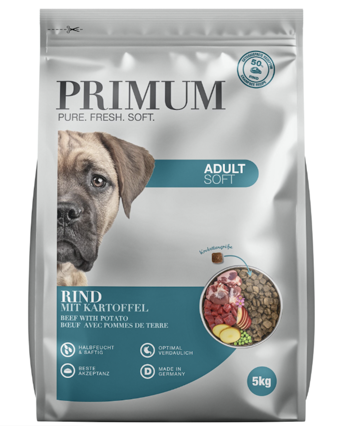 La versione manzo con patate PRIMUM fornisce al tuo animale tutto ciò di cui ha bisogno.