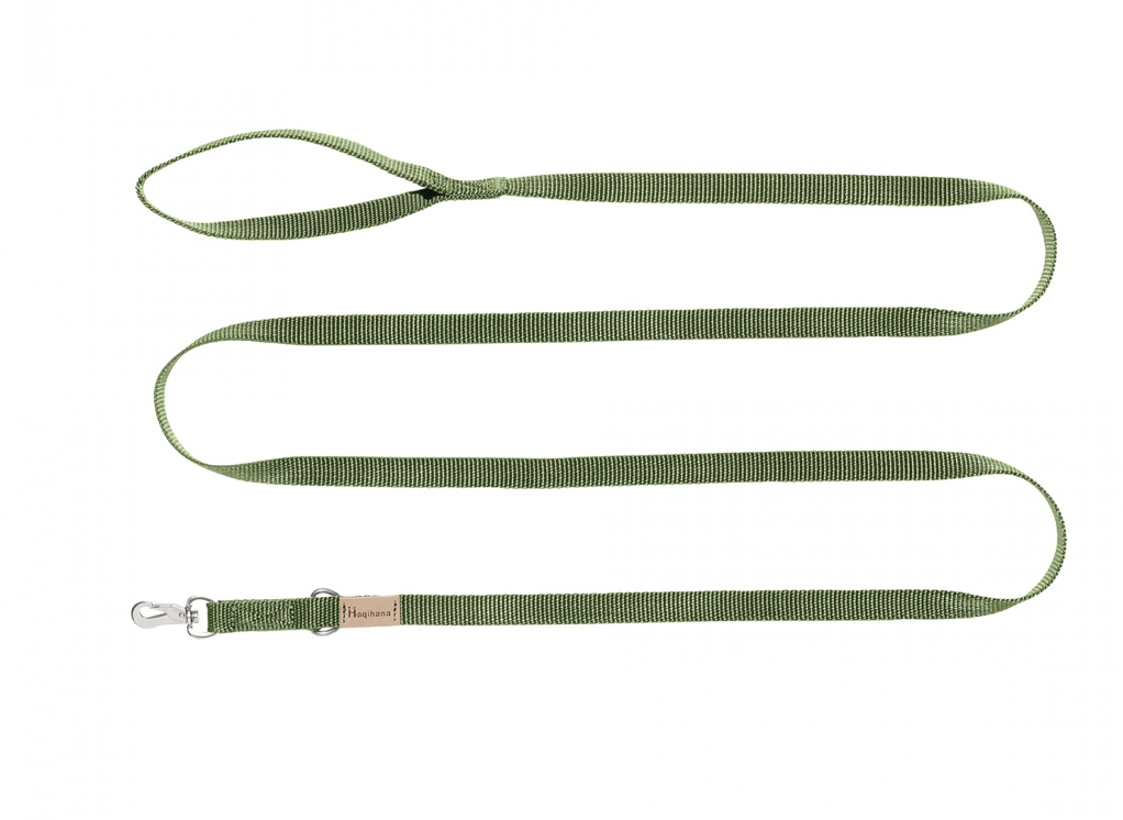 Guinzaglio VERDE da 1,5 metri prodotto con nastro in poliammide ad alta tenacità, tinto in pasta Tutti i guinzagli montano moschettoni modello BREMA in acciaio inossidabile AISI304.